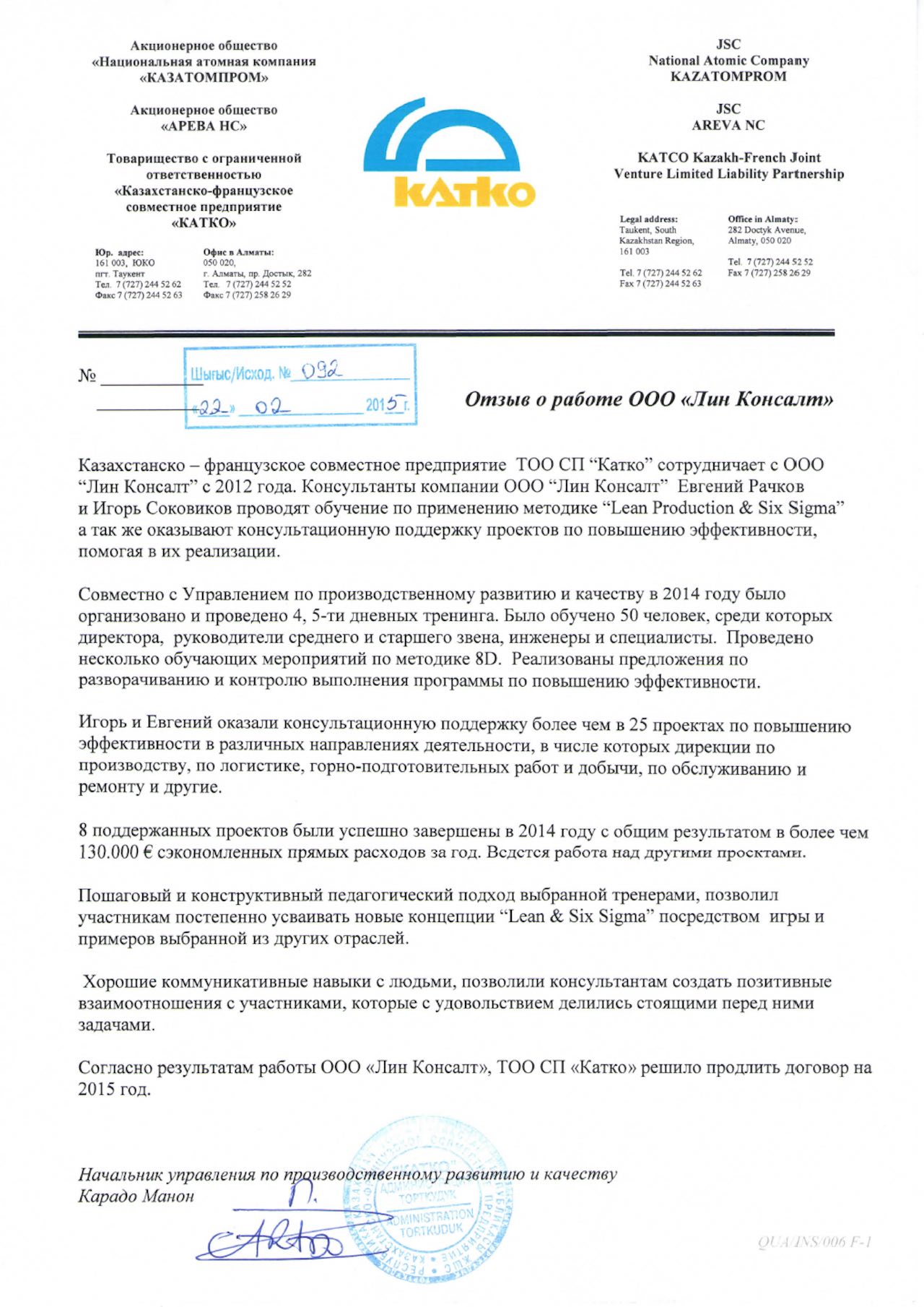 Казахстанско-французское совместное предприятие «KATКO»Kazakh — French joint venture «KATCO»