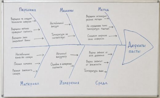 Нестабильность готовой продукции. Паста после производства имела один показатель плотности, но через несколько суток он менялся — причем непредсказуемо. Из-за этого банки с пастой «отстаивали» несколько дней, затем измеряли конечную плотность — и только потом передавали на оклейку и упаковку. Около 30% продукции не попадала в заданный диапазон плотности. Причем никто — ни технолог, ни операторы — не мог предположить, почему так происходит. Технология была новая, производств-ориентиров практически не было, и разобраться предстояло самостоятельно.