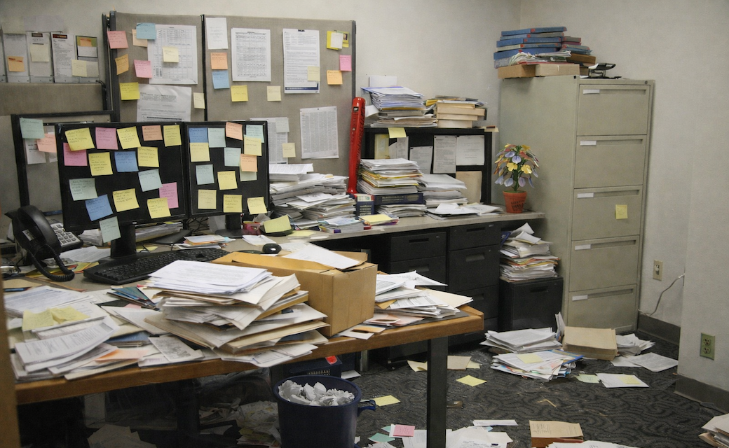 Мне нужно было найти более удобную и долгосрочную систему для составления своих заметок, и я нашел её. Теперь у меня есть три больших блокнота, которые я храню в стационарном ящике, по одному для каждой из моих должностных обязанностей. Если мне нужно написать себе записку или оставить напоминание, я задействую соответствующий блокнот. Я также заказал большой настольный календарь, чтобы отслеживать мои заметки и задания с ограничениями по времени. Результатом стало полное отсутствие ежедневного беспорядка.