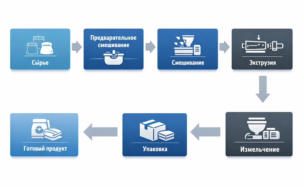 Процесс подготовки материалов для порошкового покрытия включает пять основных функций. Сырье для поставщика из центральных складов перемещается в цех, где производится предварительное смешивание, а затем тщательно перемешивается для получения однородности, а затем экструдируется через экструзионное оборудование. Мелкая крупа, полученная путем измельчения и окончательно упакованная для поставки покупателю или в отдел магазина, весь поток процесса является последовательным (рис. 1).